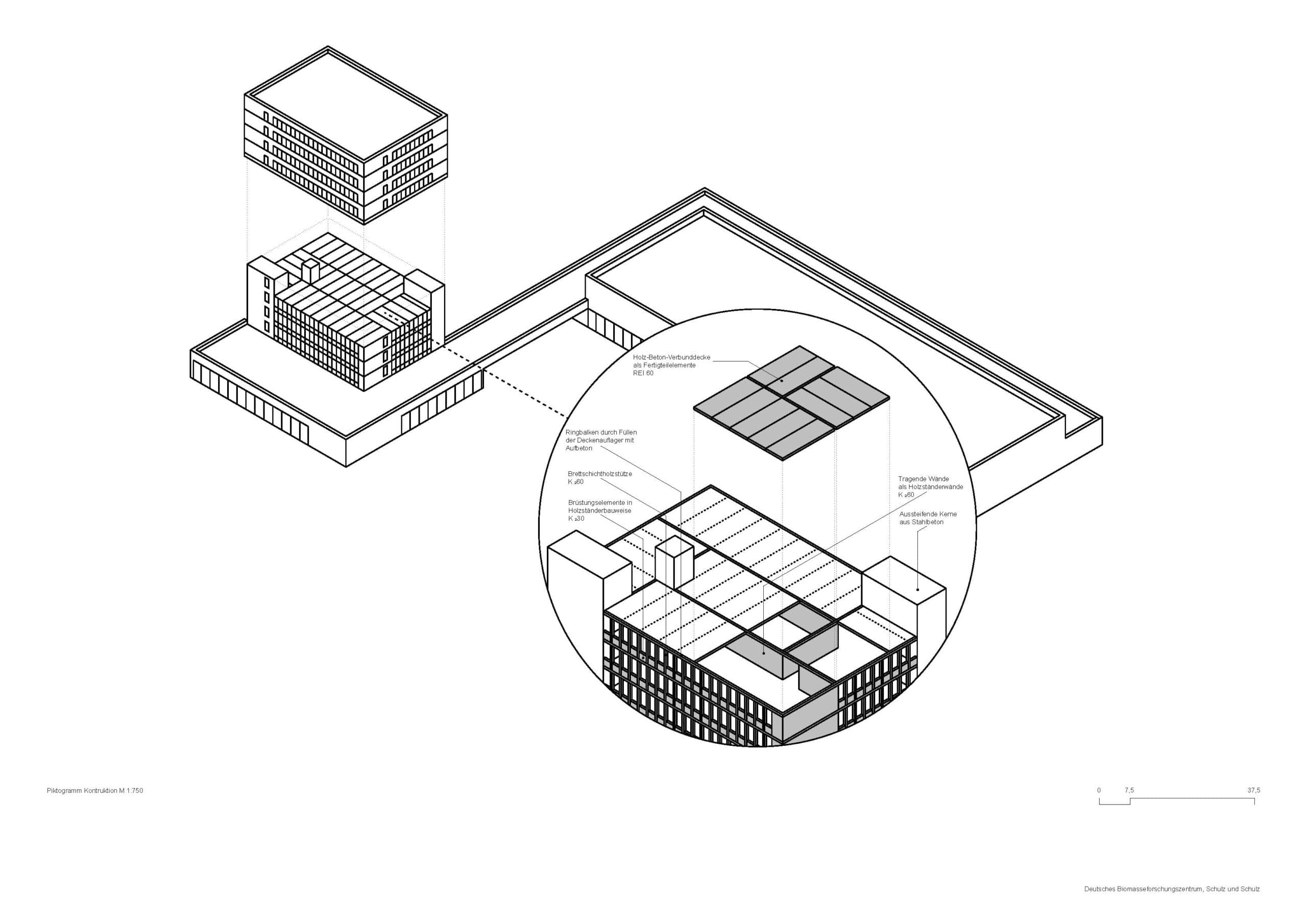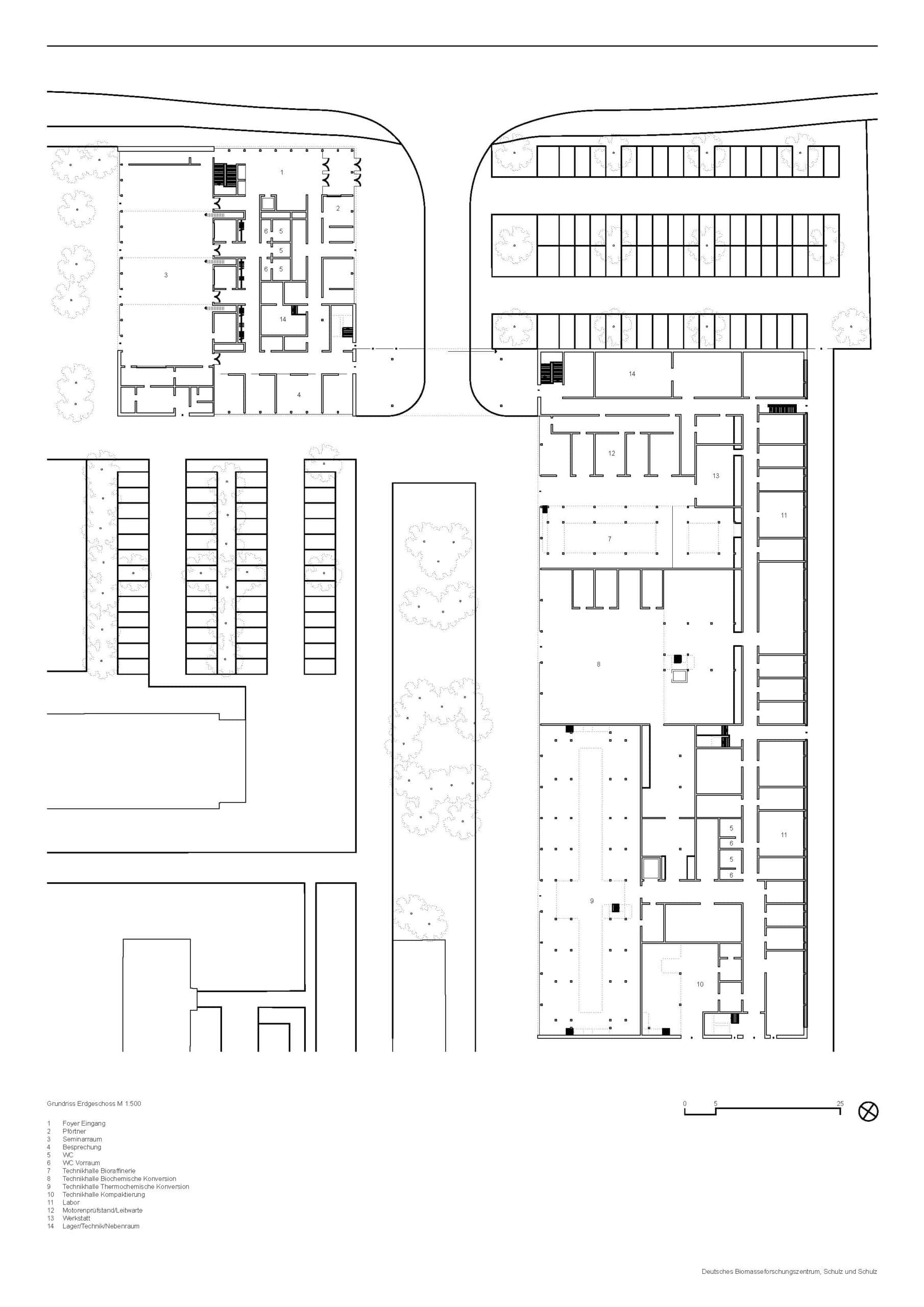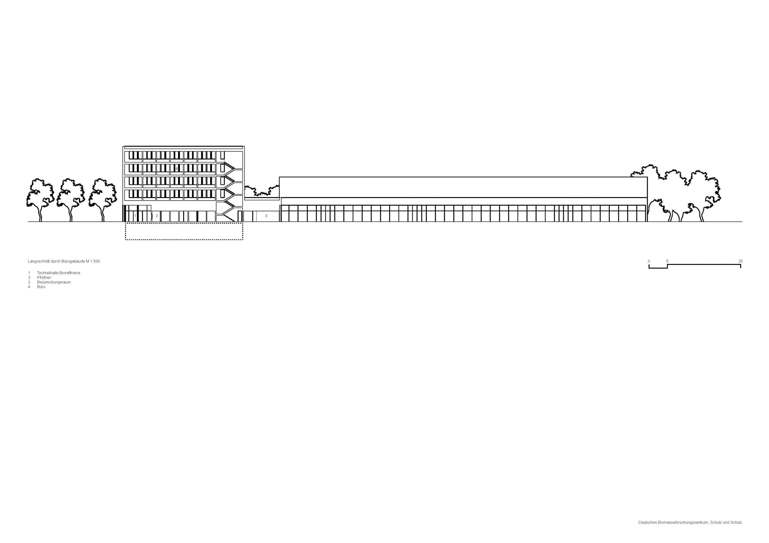 Das Deutsche Biomasseforschungszentrum (DBFZ) erforscht die Verwendung von Biomasse für die Energieerzeugung. 2008 gegründet und in Leipzig auf einer vormals rudimentär bebauten Brache beheimatet, benötigte die Einrichtung der Bundesrepublik Deutschland ein Quartier mit neuen Büros und einem Technikum mit Hallen und Laboren. Bürogebäude und Technikum stehen zwischen der Haupteinfallstraße in die Leipziger Innenstadt und der rückwärtigen Bestandsbebauung des DBFZ.