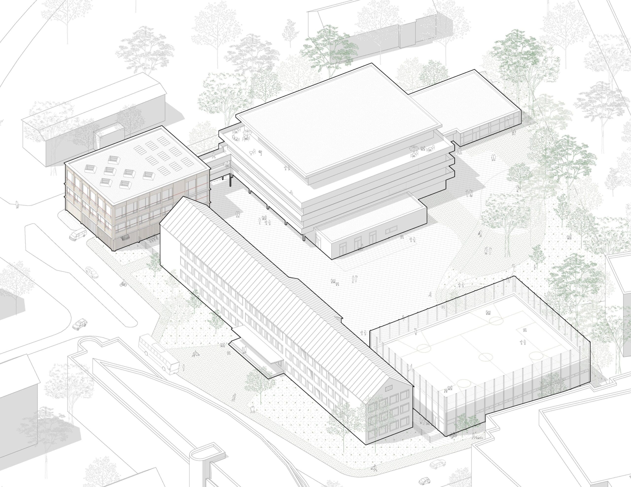 Mit dem Baubeginn im Juni 2025 befindet sich das Projekt aktuell in der Realisierungsphase. Die Fertigstellung ist für August 2026 vorgesehen. Der Erweiterungsbau schafft die räumlichen Voraussetzungen für einen modernen Schulbetrieb und zeigt zugleich, wie Holz als zentraler Baustoff im Bildungsbau eingesetzt werden kann.