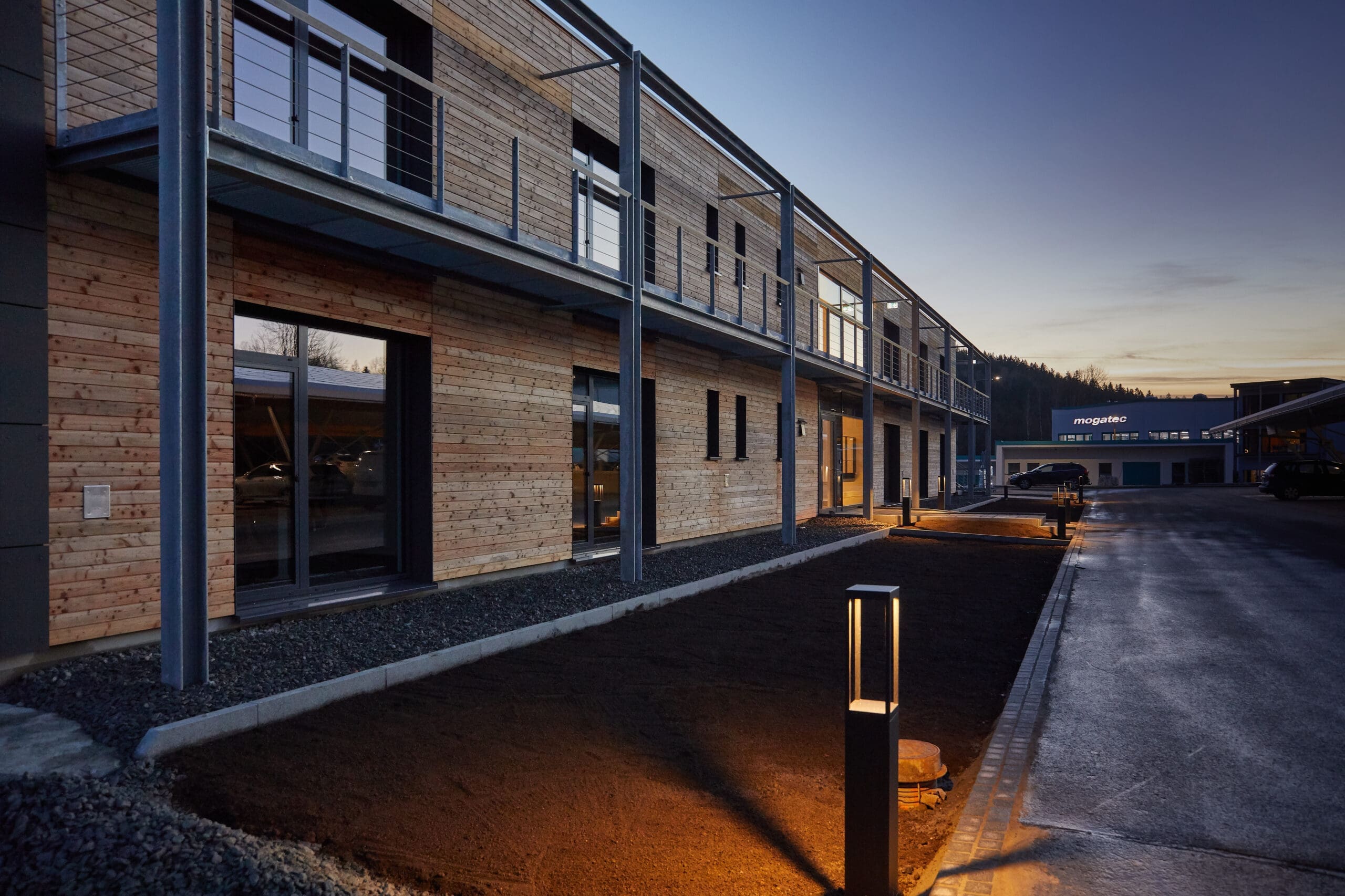 Das dreigeschossige Entwicklungszentrum bietet auf rund 1.300 m² Nutzfläche flexible Arbeitsbereiche sowie eine integrierte Cafeteria. Das Gebäude wurde in moderner modularer Holzbauweise errichtet. Teilweise begrünte Außenflächen tragen zur Verbesserung des Mikroklimas bei.